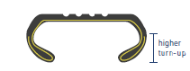 Wysokie wywinięcie warstw osnowy na ścianie bocznej.